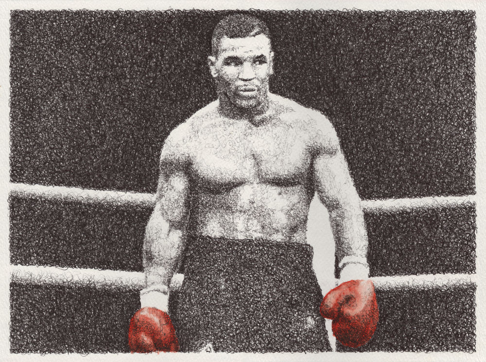 title: "Iron Mike" date: January 2016 size: 40cm x 30cm (about A3) medium: ballpoint pen (BIC medium biro) & watercolours surface: watercolour paper (140lbs Not) status: personal collection source: scan (600dpi) comment: watercolours used on gloves. - - - L I N K S - - - Zazzle - buy prints/merchandise DeviantArt - buy prints |